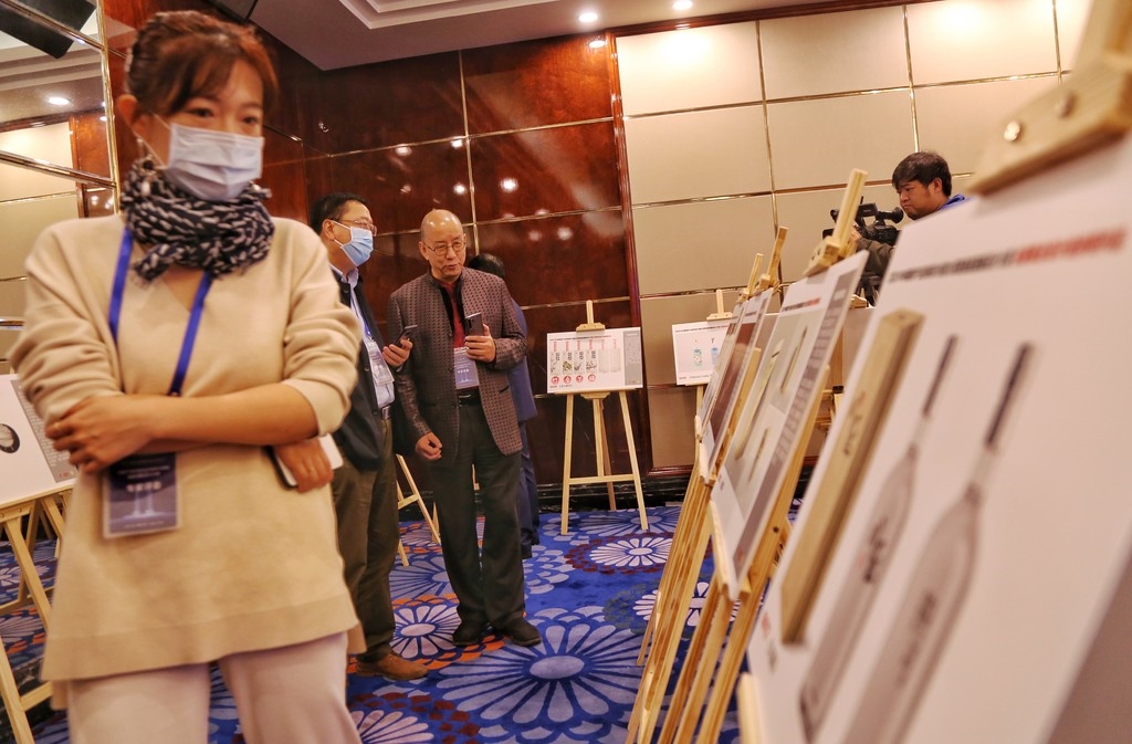 记者在包装概念设计组评选现场看到,各种不同款式的酒瓶样式,有京剧脸谱、口红酒瓶、灯笼造型的酒瓶等。