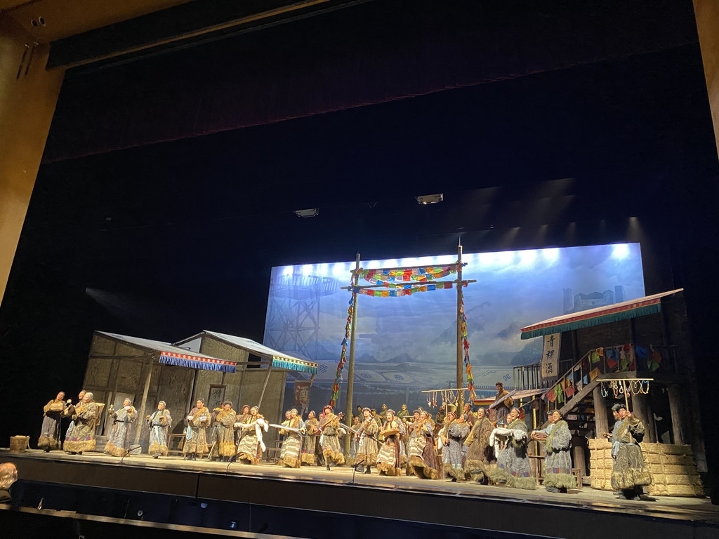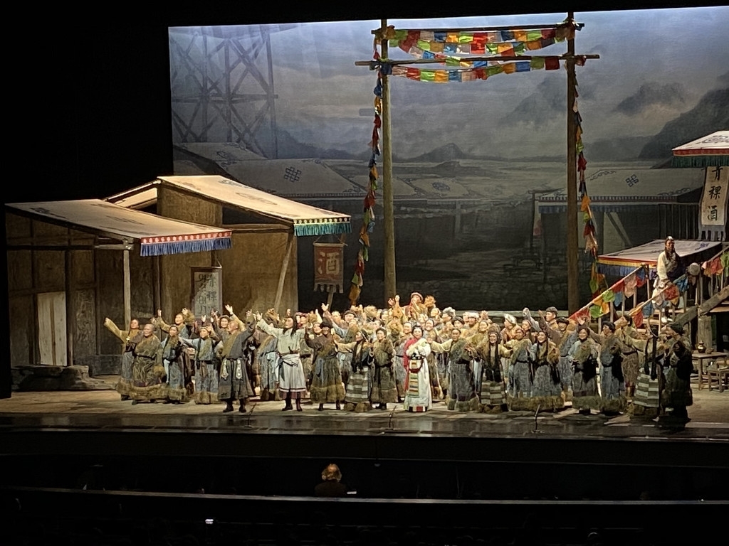 民族歌剧《尘埃落定》由廖向红导演,冯必烈、冯柏铭编剧作词、孟卫东作曲,许知俊、梁君指挥。在原著基础上,按照歌剧表现形式,对情节和人物形象进行了再加工。“问天问地问神明,问山问水问大海:为何奴隶的女儿就是奴隶?为何主人的儿子就是主宰?”音乐剧以合唱、对唱、独唱、重唱等多种形式,融入藏族音乐元素,强化戏剧张力的同时,彰显歌剧音乐魅力。