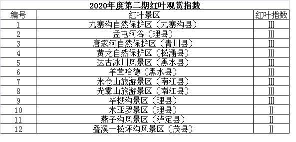 10月30日,四川省林草局官网发布2020年度第二期红叶观赏指数。