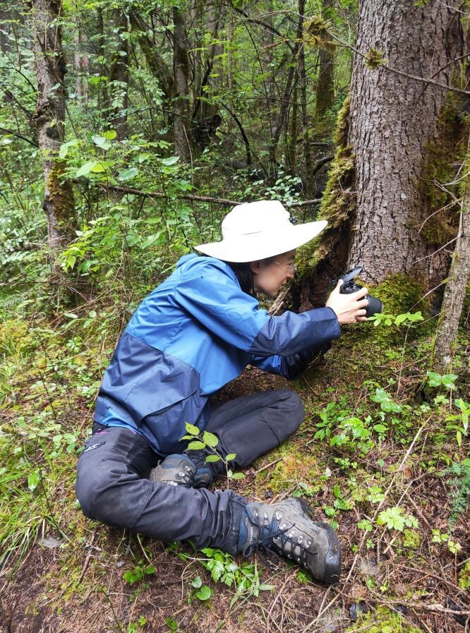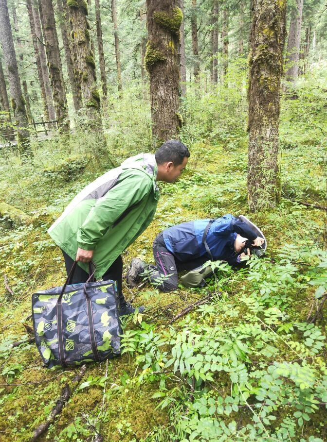 “一般每年5月至8月是植物生长最旺盛的时期,最适宜观察苔藓植物。”团队领队、省林科院生态所副研究员潘红丽说,7月中旬,团队全副武装,进入九寨沟。盛夏的九寨万物生长、鸟语花香、美不胜收,大家却顾不上欣赏沿途风景,翻越悬崖峭壁,穿过山洞河流。