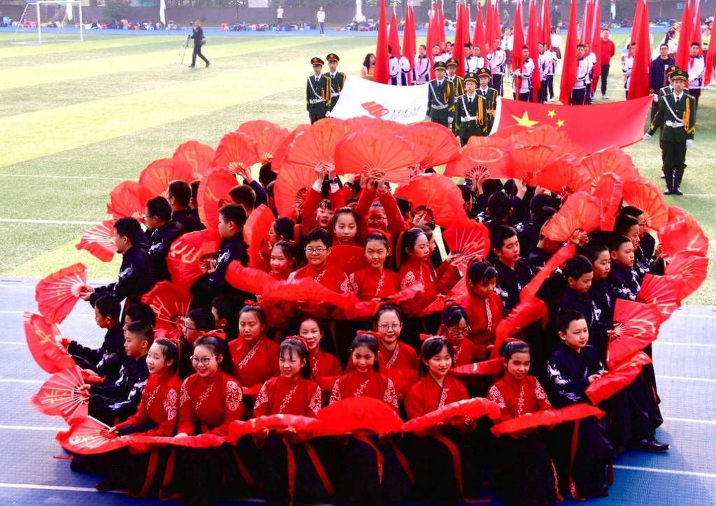 10月29日,在成都久违的阳光中,成都市盐道街外语学校同样迎来了该校一年一度的体育盛事。学校团体操方队的娃儿更是将绘本、蜀食、成都文化、三国、劳动、电影文化融入在了方队表演中,精彩又活泼。