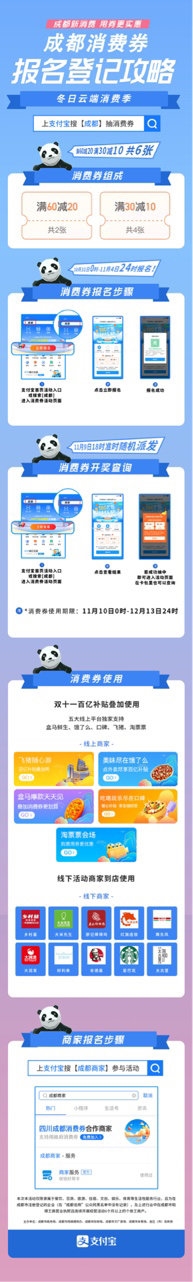 记者从成都市商务局获悉,为了让消费者在“双11”享受更多的福利,第四期消费券报名日程提前上线,消费者可在10月31日(周六)开始报名,时间截止到11月4日(周三)。红包将于11月9日发放,与第三期消费券无缝衔接,使用时间则为11月10日至12月13日,横跨“双11”“双12”两大购物狂欢节,与商家促销同步进行、叠加使用,让消费者的快乐“加倍”。值得一提的是,这是成都今年最后一期消费券,消费者们请把握机会,调好闹钟,千万不要错过!