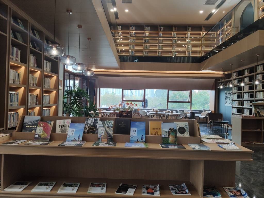 这种“诗意”浸润着馆里·鹿溪智谷分馆每一寸空间:年轻、时尚兼具古雅的设计风格,构建出沉浸式的阅读效果;置身其中阅读,抬头即自然美景,低头有书香环绕。