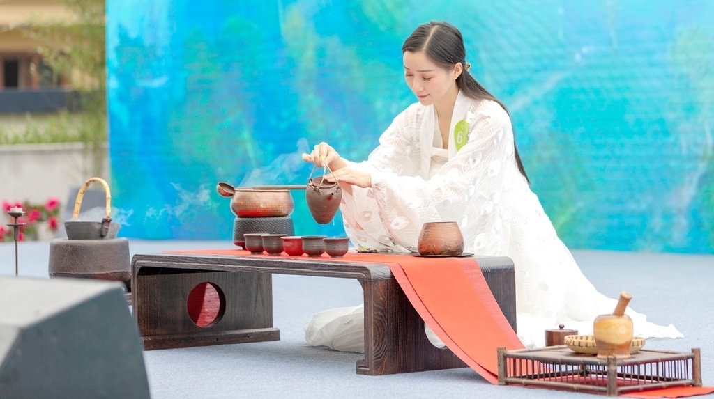与此同时,指定茶艺竞技也在另一块高雅的比赛场地严谨的进行着。