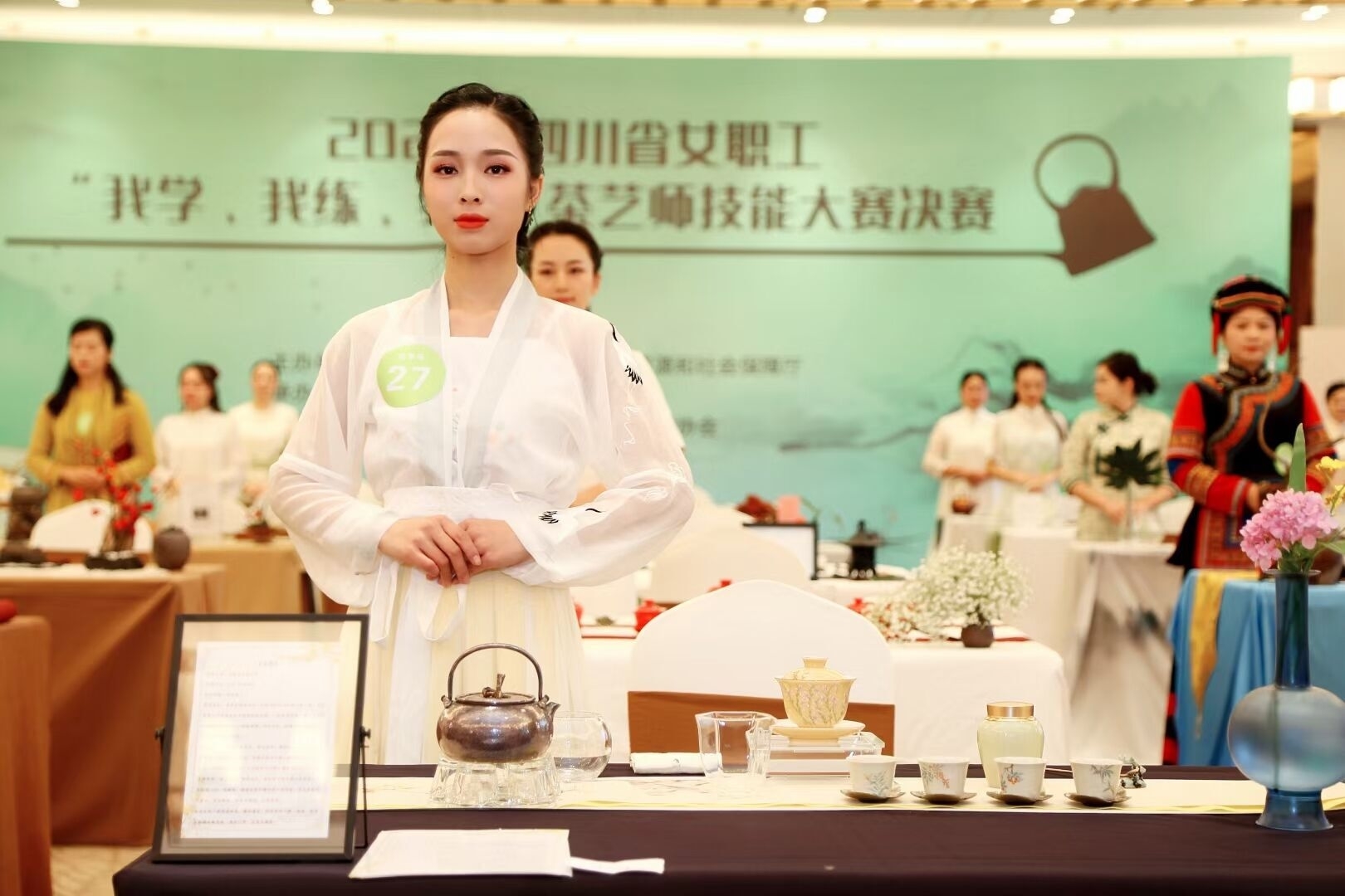 省总工会女职工委员会负责人介绍,围绕“4+6”现代服务业发展需要,在助推我省经济高质量发展中,充分发挥女职工主力军和半边天作用,举办了此次大赛。本次大赛为省级一类职业技能大赛,由省总工会、省人社厅联合主办,成都市总工会承办,都江堰市总工会、省茶文化协会联合协办。