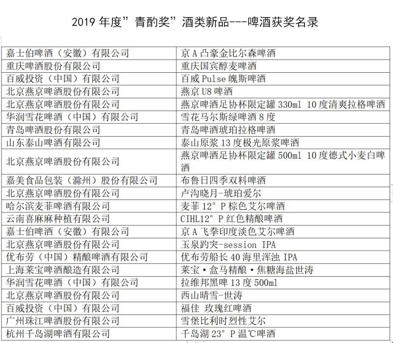 10月31日,2020中国国际酒业博览会重头戏之一——2019年度“青酌奖”酒类新品颁奖盛典在泸州举行。产自全国各地的酒类“新星”,共58款白酒、15款黄酒、22款啤酒、10款果酒、15款露酒、20款葡萄酒荣获“青酌奖”。