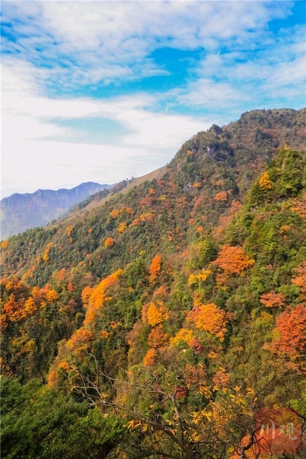 巴山大峡谷位于达州市宣汉县,地处大巴山国家地质公园核心区,属喀斯特地貌,山高峡谷多,海拔落差达 2000 多米。近年,宣汉县对巴山大峡谷片区实行综合开发——依托自然资源和峡谷景观打造观光风景名胜区、依托独特的生态和人文资源打造旅游度假区。眼下深秋季节正是景区内彩林的最佳观赏期。