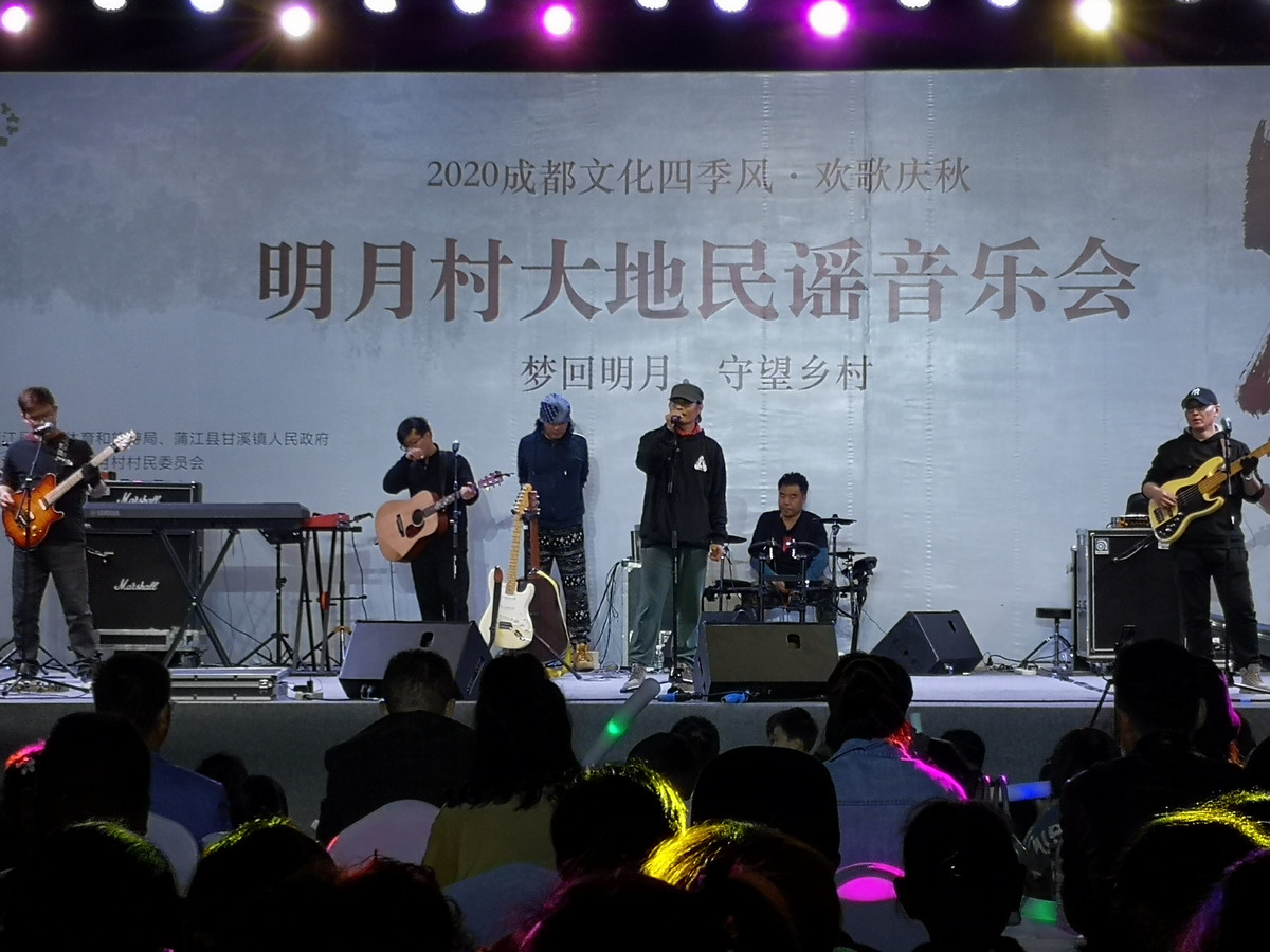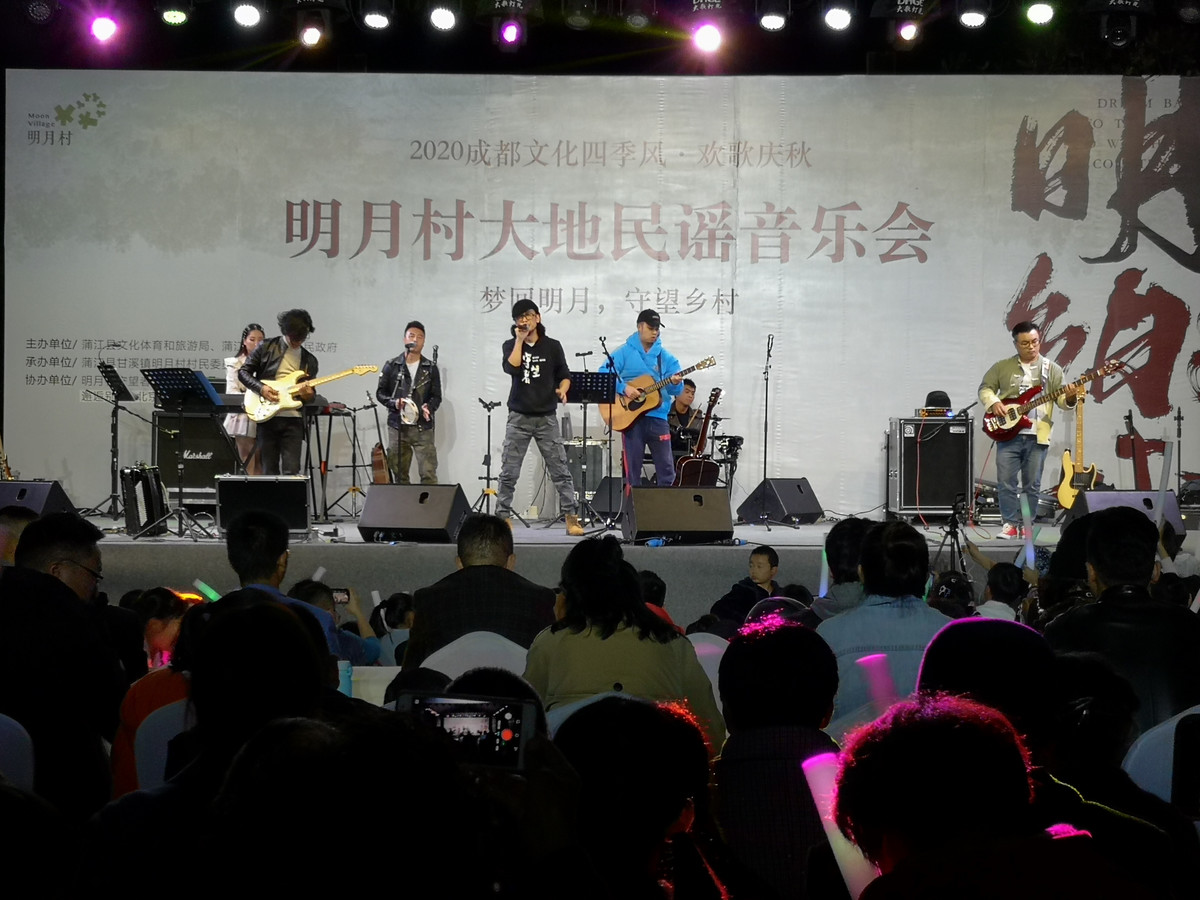 10月31日晚,成都蒲江明月村,“梦回明月 守望乡村”明月村大地民谣音乐会举行。国内知名民谣乐队“新工人乐团”、成都本地乐队“南区街音乐团”和明月村本地乐队“守望者乐队”参加演出,为村民和游客带来了一场视听盛宴。