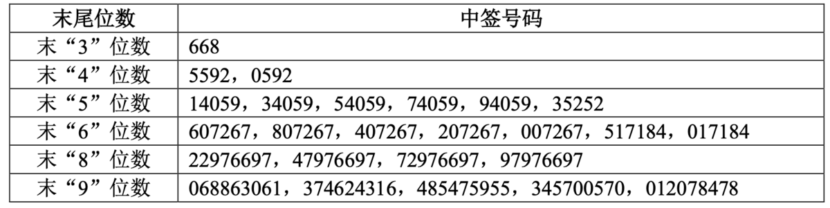 也就是说,凡参与网上发行申购蚂蚁集团股票的投资者持有的申购配号尾数与上述号码相同的,则为中签号码。