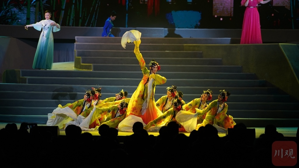 11月1日晚,成都杜甫草堂,第六届中国诗歌节开幕。以“长风破浪会有时”为主题的文艺演出进入第三篇章——“天府”诗韵。现场吟唱的九首诗词,让观众大饱眼福、耳福,跟着吟诵着穿越回千年前的“天府之国”。