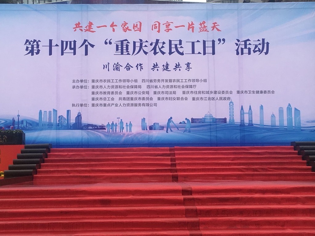 当天,由重庆市农民工工作领导小组、四川省劳务开发暨农民工工作领导小组共同主办的第十四个“重庆农民工日”活动,在重庆市江北区观音桥商圈广场举行。记者在现场看见,“川渝合作 共建共享”的元素贯穿所有活动,现场除了有川渝返乡创业企业成果展外,还有川渝农民工专场招聘和政策宣传活动,以及川渝农民工才艺作品展和农民工主题摄影作品展。