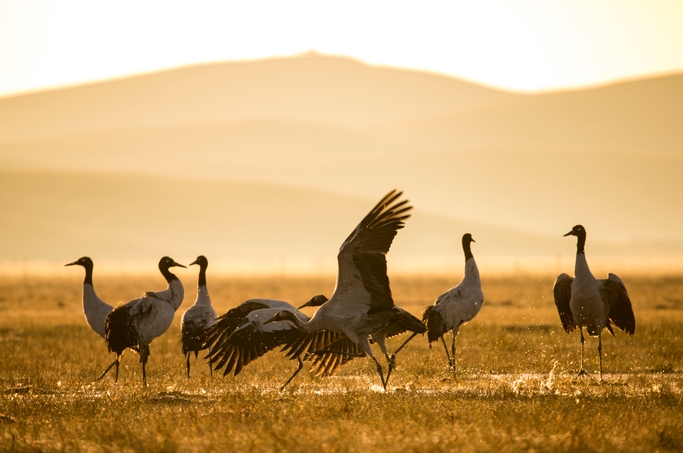 成群黑颈鹤“安家”若尔盖湿地。若尔盖融媒体中心供图