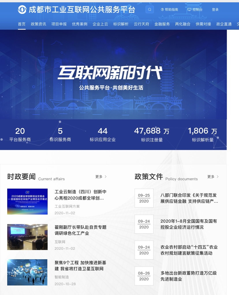 该平台为四川省首个工业互联网公共服务平台,由成都市经信局指导、成都市软件产业发展中心负责建设与运营。目前已建成政策资讯、项目申报、供需对接、企业上云、标识解析、金融服务等服务模块,涵盖弹性计算、云存储、工业大数据服务、工业微服务组件、建模分析、研发设计等上百类服务,可为企业研发设计、生产制造、仓储物流、运营管理、供应链协同等全流程提供产业监测、效益评估、供需对接、解决方案推广、协同推进政策落地等服务。