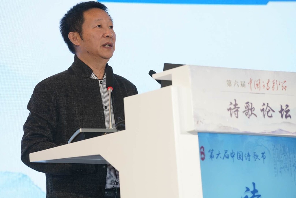 在论坛上,欧阳江河谈到了世界格局和本土写作美学转化的可能性和转化的机制。他从文学、美术、服装、美食、建筑等角度阐述了中国文化在世界的影响力,越来越多的西方品牌融入中国元素,中国逐渐成为一个文化大国、更是一个诗歌大国。