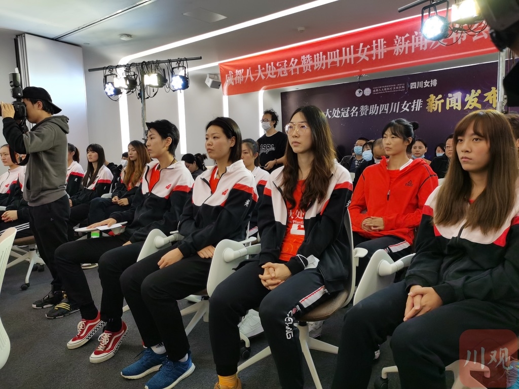 在签约仪式的现场,16位身姿挺拔、阳光漂亮的女排姑娘们整装出席,成为一道靓丽的风景线,随着签约的顺利完成,同时也宣告着四川女排在新的一年将正式更名为“四川八大处女排俱乐部”。