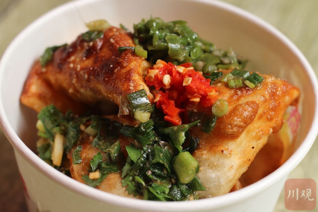 小吃街的臭豆腐风味独特,是传统臭豆腐和南充味道结合的美味。当臭豆腐在热油里翻滚,豆腐的清香被激发出来并占据主导地位,油炸的焦香和蘸料的鲜辣在一瞬取代了原始的“臭”。让川北医学院学子毕业后一直念着的也正是记忆里那份独一无二。