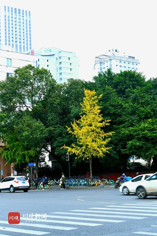 据了解,11月-12月是成都观赏银杏树的最佳时节。受降温影响,成都的银杏叶目前已俏然变黄,但如果想要拍照打卡满眼“金秋黄”的美丽场景,市民还要再等上一阵。