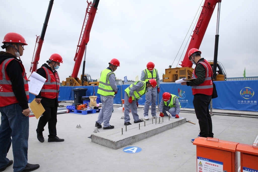 推动装配式建筑产业高质量发展,需要高质量的建筑产业工人作为支撑。大赛组委会相关负责人介绍,本次参赛的122支队伍,分别来自重庆以及成都、绵阳、宜宾、乐山、泸州、眉山、德阳、南充、达州、广元、遂宁、自贡、资阳、内江、雅安、西昌等21地,代表着川渝地区装配式建筑发展最高水平。据了解,本次比赛重点围绕装配式建筑的实际操作展开,主要从构件制作、构件吊装、构件灌装、轻质隔墙安装、叠合板支护与安装 5个项目,检验工人熟练、精细地制作、打磨、组装构件的技术能力,同时比赛还将考察工人们的理论知识水平。