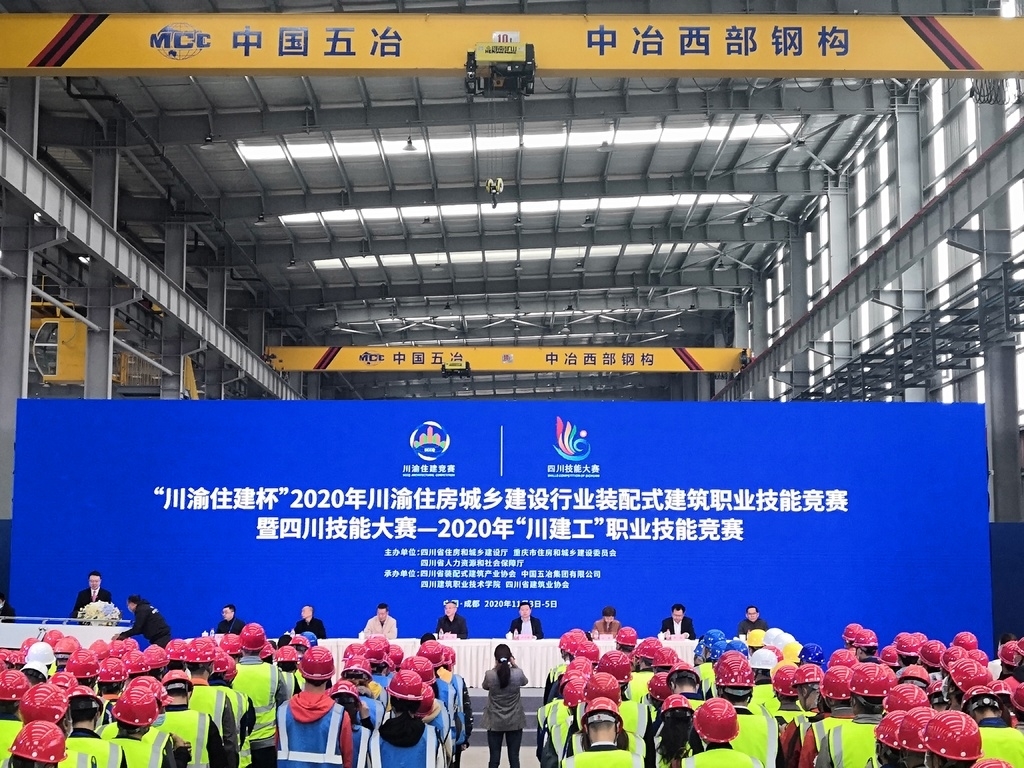11月3日,中国五冶(成都)建筑科技产业园,2020年川渝住房城乡建设行业装配式建筑职业技能竞赛暨四川技能大赛2020年“川建工”职业技能竞赛在这里开幕——来自川渝地区的122支代表队伍将展开为期三天的技能比武,角逐最终优胜奖杯。