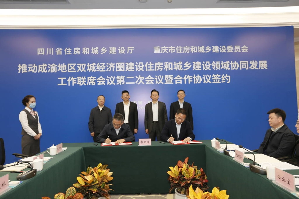 11月3日,四川省住建厅与重庆市住建委在重庆举行推动成渝地区双城经济圈建设住房和城乡建设领域协同发展工作联席会议第二次会议。本次联席会上,川渝住建部门共同签订“1+3”合作协议(《加快推动成渝地区双城经济圈建设住建领域协同发展合作框架协议》(以下简称《框架协议》)、《住房保障工作合作备忘录》、《川渝住房城乡建设博览会备忘录》、《川渝建设职教联盟合作协议》),双方明确,川渝两地将进一步深化住建领域合作,共同推动高品质生活宜居地建设。