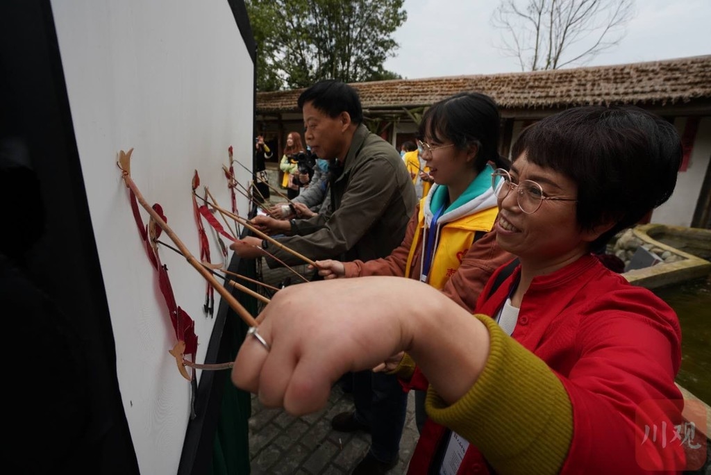 眼前,青砖白瓦的川西民居散落田野,茂林盛竹里,宽敞洁净的村道掩映其中。磨盘、豆瓣酱缸,这些勾起遥远乡愁的老物件随处可见。狄力木拉提·泰来提和其他诗人兴致勃勃,他们先后前往天府农耕文化博物馆、乡村十八坊和郫县豆瓣博物馆等,感受四川乡村生活点滴。看竹编技艺、寻古城遗址、体验制作唐昌布鞋……在郫县豆瓣博物馆里,经过岁月发酵的老豆瓣酱乌黑透亮,浓厚香醇的味道扑鼻而来。重庆市作协诗创委副主任金铃子没忍住,好奇地从酱缸捞起一勺,和周围诗人讨论起这种酱的制作手法。