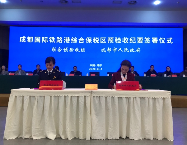 11月4日,由成都海关会同四川省发展和改革委员会、四川省财政厅、四川省自然资源厅、四川省商务厅、国家税务总局四川省税务局、四川省市场监督管理局、国家外汇管理局四川省分局组成的联合预验收组对成都国际铁路港综合保税区(以下简称“铁路港综保区”)进行了预验收评审。经实地勘察、综合评审后,同意铁路港综保区通过联合预验收。