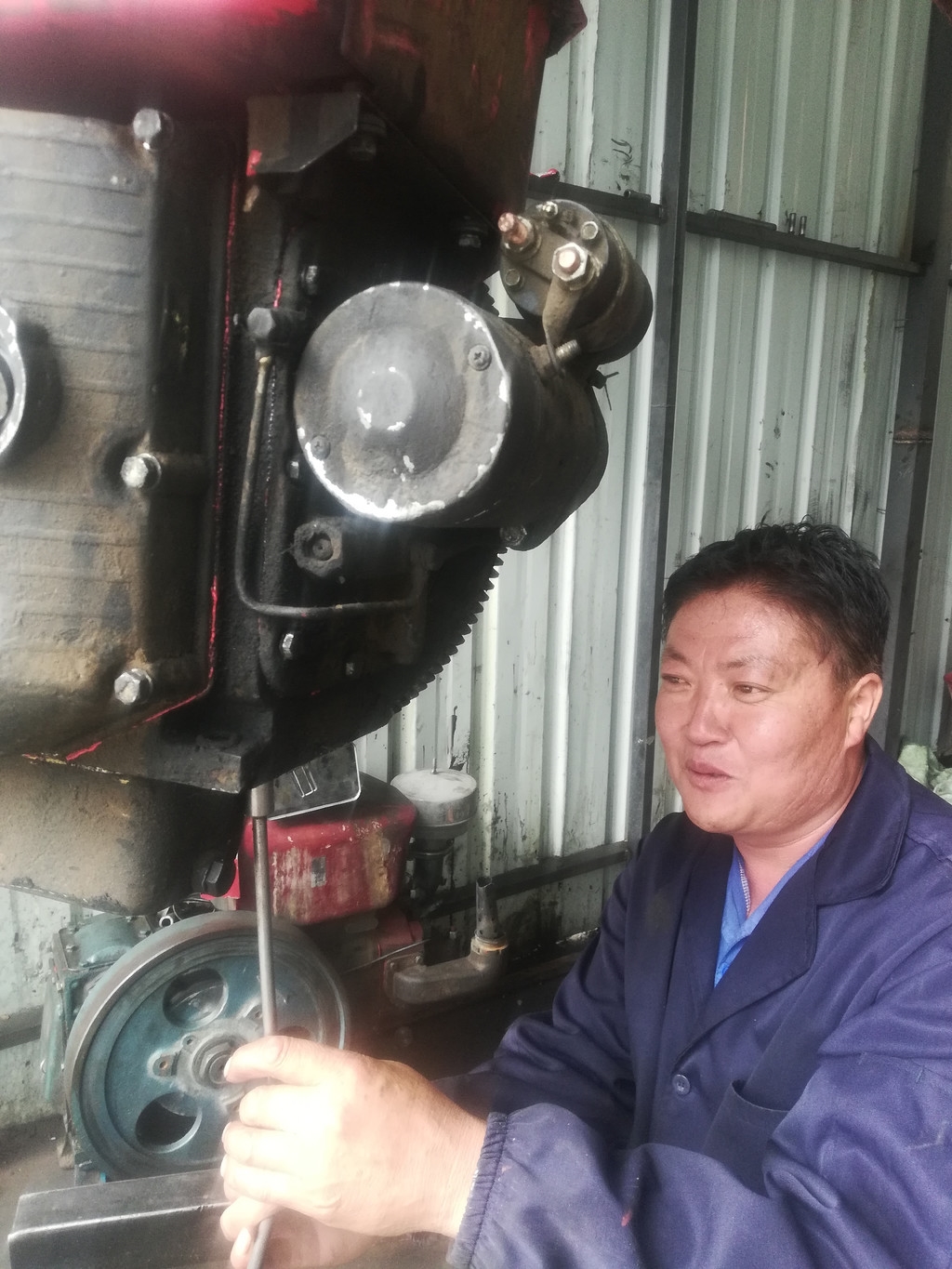 11月3日,晌午时分,妻子已经催3次饭了,罗兴国还捏着扳手,立于铁架边,一颗一颗转紧螺丝帽。全身上下沾满了黑漆漆的油渍,但罗兴国心里十分敞亮。“罗师傅,拖拉机咋一发动就有异响呢?”“齿轮、轴承磨损凶了,换个新的零件,上点儿油就好了。”如今的罗兴国是乡城县远近闻名的维修“高手”,当地群众的农械有个”三病两痛“,专服罗师傅。