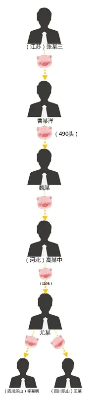 曹某洋在挑选生猪的时候发现了端倪,有的猪出现了走路打晃、身上发紫、发红、倒地等症状,但是仍然支付28.97万元购买了其中没有出现明显症状的猪约490头,并以32.2万元的价格将批生猪转卖给魏某,魏某又以36.5万元的价格转卖给河北省无极县的高某中, 高某中将该批生猪分四批分别出售,其中有一个买家尤某以17.76万元的价格购买111头生猪,又将该批生猪转售给乐山市的李某明和王某,并提供虚假电子版动物检疫合格证明和非洲猪瘟检测报告。