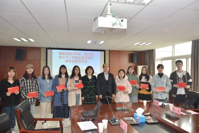 座谈会上,海南省四川商会、四川省关心下一代基金会向20名受助大学生发放了助学金。企业家们向同学们分享了自己创业路上遇到的挫折和如何克服困难最终创业成功的经历,并希望同学们面对贫困自强不息,不攀比、不虚荣,树立正确的世界观、人生观和价值观;希望同学们珍惜学习机会,认真学习,学以致用,用知识成就自我;希望同学们常怀感恩心,待今后有能力时接过爱心接力棒,传递爱心,回报社会。