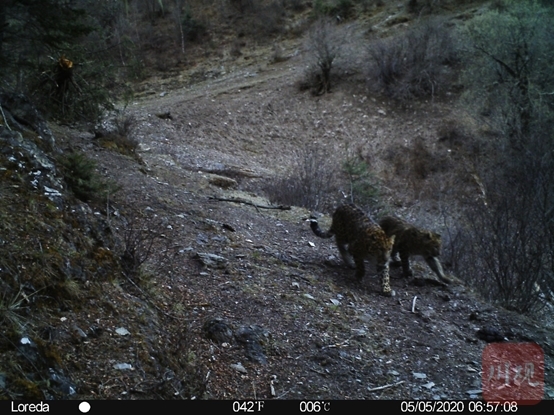 据最新收回来的红外相机数据显示,本次调查再次在多个点位发现金钱豹、雪豹、猞猁等猫科动物活动,尤其是益麦社区的1个相机点位拍摄到3只金钱豹的画面十分震撼,画面中有一大两小共3只金钱豹,首先是一大一小出现在红外相机的画面中,随后又跟了一只,根据调查专家介绍,这是一只母金钱豹带着2只幼崽。