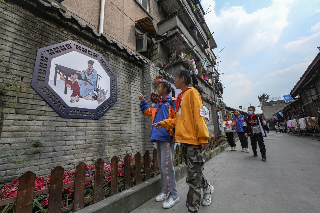 同时再将刘沅《槐轩全书》、彭端淑《为学》、传统典故、茶文化等内容进行沿途贯穿打造,让学生们在行走中学习和感受传统文化魅力。路段上的墙面增加趣味性、学习性、互动性内容,让学生在上学放学途中都能真正的学在途中、乐在途中、安全行在途中。这段“优学步道”基础设施打造完成后,告别了之前的“脏乱差” ,提升了居民整体居住环境。“这里的住户还改掉了房前屋后堆放杂物的习惯,为居民出行提供便利,加强了居民们的交通安全意识,在居民们获得幸福感和安全感的同时,也提升了居民对社区管理和治理成效的满意度。”唐晓玎说。