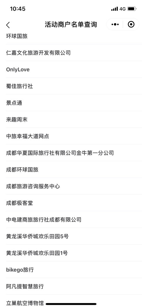 除此之外还有言几又、新华文轩、环球国旅、九洲酒店、太平洋影院、黄龙溪华侨城欢乐田园、立巢航空博物馆、咪咕音乐、足力健、V9健身等数万家商户都可以使用。在使用消费券的过程中,消费者还可留意、询问是否有叠加优惠。