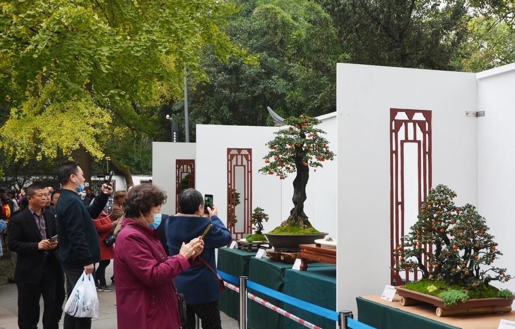 11月6日,两年一届的成都市第23届盆景展,在百花潭公园开幕。来自成都、重庆、自贡、泸州、乐山等川渝两地的300余件盆景作品集体亮相,共有107件作品获得本届盆景展金、银、铜奖。据了解,本届展会为期10天,将持续至11月15日,届时将全场免费向市民开放。