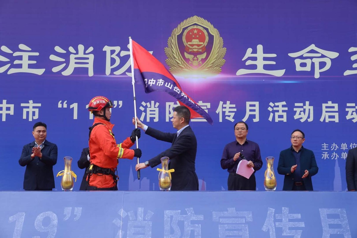 启动仪式上,巴中市副市长岳剑向国家综合性消防救援队伍专业(地震、化工、水域、山岳、高层建筑、森林火灾)救援队和志愿消防宣传队进行了授旗,与会领导向2020年度微型消防站比武竞赛获奖者进行了颁奖。