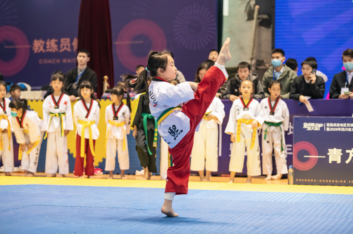 11月7日,“爱成都·迎大运”首届成渝地区双城经济圈跆拳道公开赛暨2020年四川省大众跆拳道比赛,在四川财经职业学院体育馆正式开幕。比赛吸引了来自重庆、德阳、自贡、广汉等成渝两地经济圈各个城市的154支代表队,近3000名选手参赛,最小年龄选手只有4岁半,未来两天,他们将角逐出412个组别的冠军。