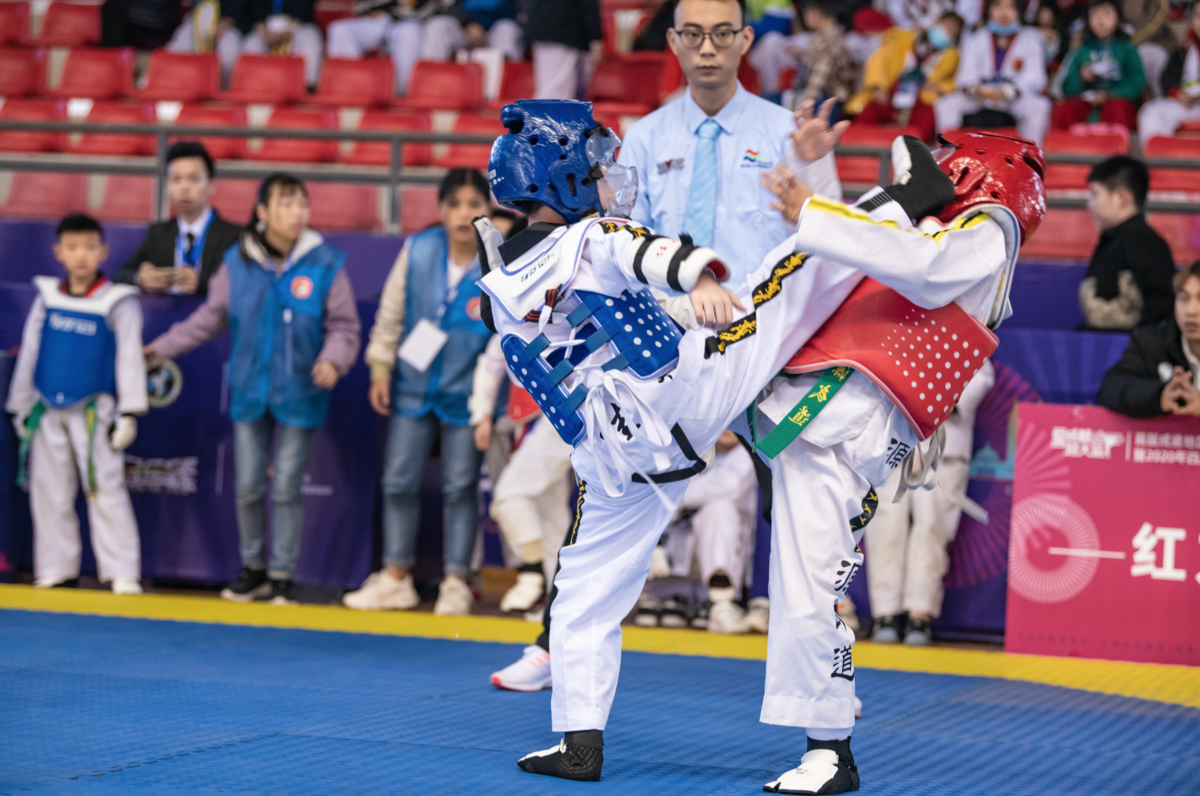 “学跆拳道可以防身,也可以锻炼我的胆量,”12岁的叶恩同从小学一年级开始接触跆拳道,到目前已经练了5年,面对记者的镜头,他毫不怯场,“和5年前相比,我现在力量更大了,胆子也大了,还学到很多防身技巧,段带等级的提升也让我更有成就感。”这一次,叶恩同报名了男子儿童甲组太极3章组个人品势、以及男子儿童甲组连续360横踢比赛项目,他的目标是突破自己。