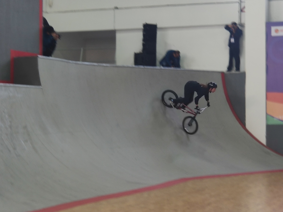 在营山BMX小轮车自由式馆,参赛选手个人特色突出,身怀绝技,具有惊人的腾空高度和细腻的动作技巧。“波浪”赛道、“碗”形赛道里,转把、交叉手打车、后空翻等动作轮番上演,这些动作难度高,腾空高,动作夸张舒展,让不少观众看得直呼过瘾。“没想到自行车可以玩出这样的花样!”当天前来围观的市民郑伶俐频频拿起手机,将赛场上的炫酷瞬间一一录下,并分享在自己的朋友圈。