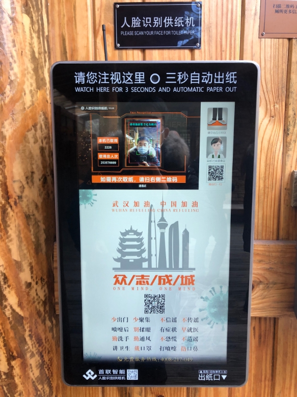 记者试用人脸识别自动出纸系统
