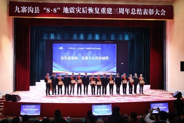 当天,九寨沟县委、县政府还对九寨沟灾后恢复重建表现突出的30个集体和100名个人予以表扬,分别授予“九寨沟县‘8·8’地震灾后恢复重建先进集体”和“九寨沟县‘8·8’地震灾后恢复重建先进个人”称号。