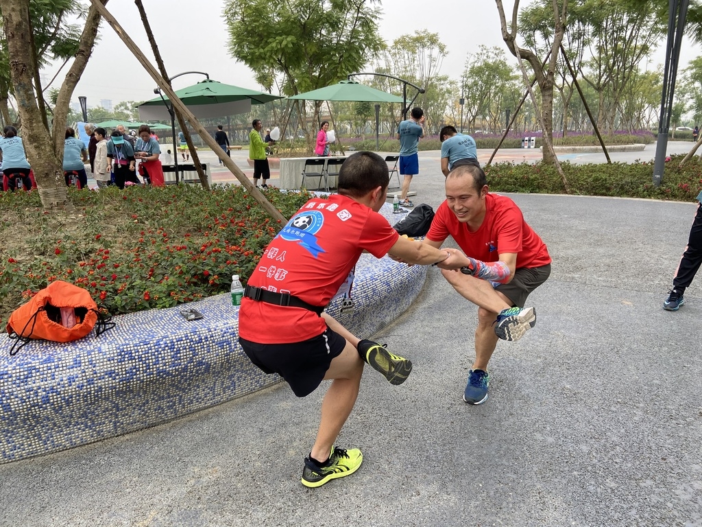 11月8日,“爱成都·迎大运”2020年成华区社区运动节绿道全民健身系列活动——PEAK+U 六公里熊猫生态跑在北湖生态公园正式开跑。天还未大亮,800余名跑步爱好者就早早到达公园内,统一的灰色短袖上衣、紧身裤、跑鞋、运动头带……跑者们“全副武装”分组进行着拉伸运动,为接下来的比赛做热身准备。在现场,有很多小朋友也和家长一起参与到本次跑步活动中,萌娃们一本正经压腿拉伸的样子,让人直呼可爱!