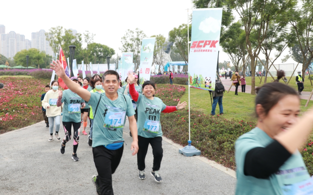 在活动的现场,一个名为“天府乐跑团龙泉分团”的团体格外引人注目,他们不仅挥舞着团队旗帜,还将拥有团队元素的毛巾披在身上。据本次参赛领队付晓娟介绍,天府乐跑团在成都市每个区都有分团,目前龙泉分团已经有超过1000名团员。“现在爱好跑步的人群很多,我们因为跑步相聚在一起,认识了很多有趣的人。我去年就参加了熊猫生态跑活动,很享受,不仅增加了周末的趣味性,跟着一群人一起跑更加提高了自己跑步的积极性。”付晓娟在接受记者采访时表示。