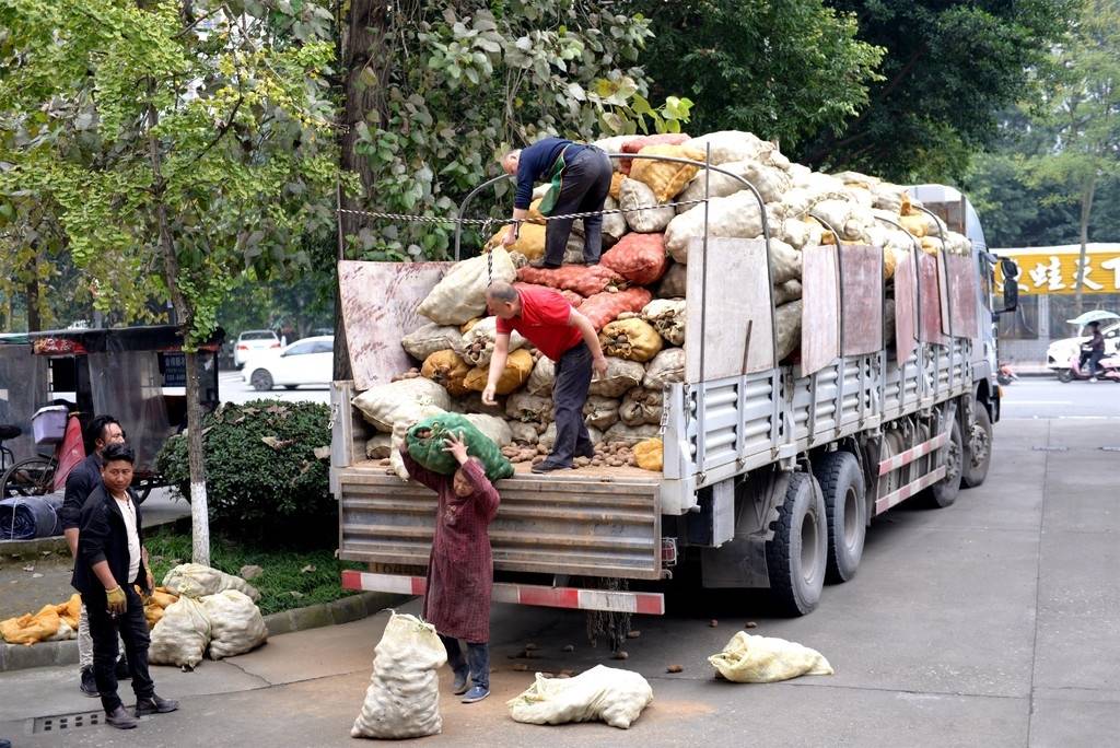 11月7日,销售完今年最后一批3万斤土豆,甘孜州理塘县木拉镇卡下村委会主任降央吉村怀揣着成都市新都区人社局的满满爱心往回赶。