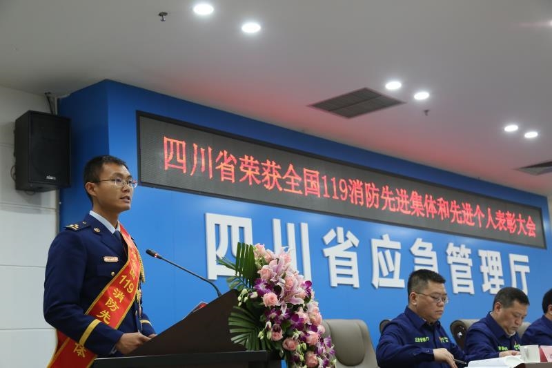 本次表彰大会在省应急管理厅设立分会场,部分获奖代表在分会场接受表彰,获奖集体成都市青羊区草堂街道办事处、凉山州盐源县应急管理局综合应急救援大队、西昌市森林消防大队代表发表获奖感言。