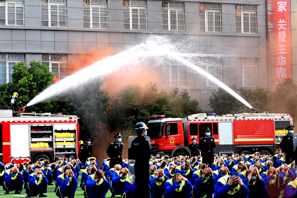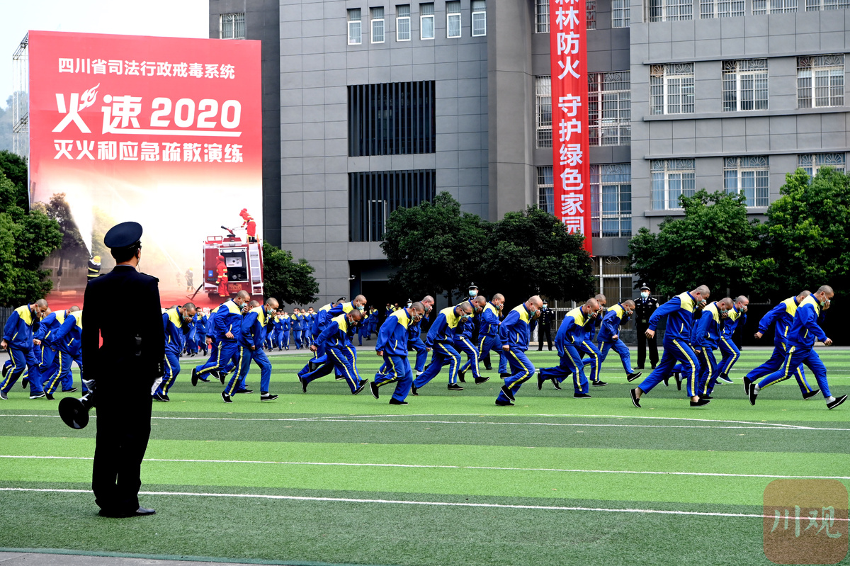 “指挥中心,指挥中心,八大队发生火情,火势较大,现正在组织扑救……”11月9日下午3点,四川省新华强制隔离戒毒所内浓烟滚滚、火光四射。四川司法行政戒毒系统“火速2020”所地联合灭火和应急疏散预案演练正在这里举行。