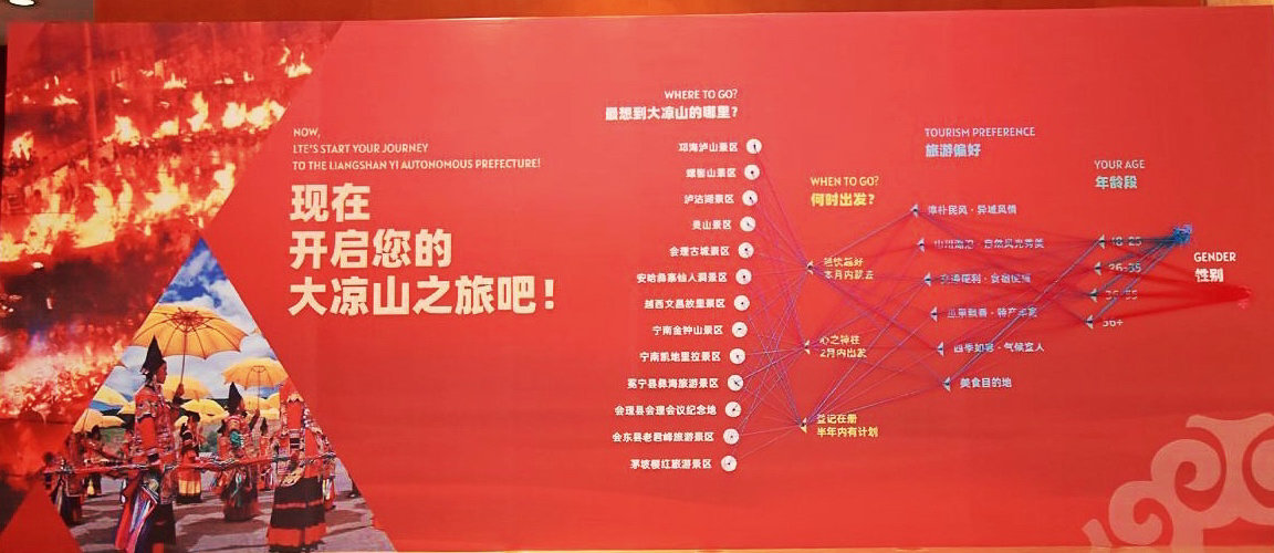 在解放碑、重庆高铁站、江北机场等人流密集地,凉山州文广旅局投入大量精美的图片和精美短视频展示凉山文化旅游资源,让重庆市民更直观的了解凉山。