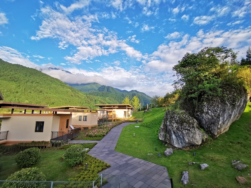 桌山森林康养国际旅游度假区位于雅安荥经瓦屋山西麓,毗邻大熊猫国家公园南入口和龙苍沟国家森林公园,森林覆盖率98.6%。
