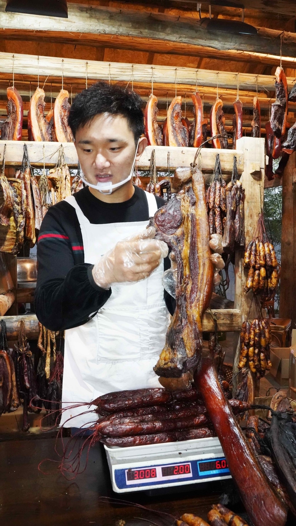 邵瑞琴是这个腊肉世家的新生代,长得端庄秀丽,从小耳濡目染之下,她也对腊肉香肠的制作销售产生了兴趣,高中毕业之后,她开始全身心投入到腊肉香肠的销售中来,除了把自家的门店生意打理得有声有色之外,她还积极对外拓展更多的销售渠道,也因此获得了“腊肉西施”的雅号,在青神县小有名气。