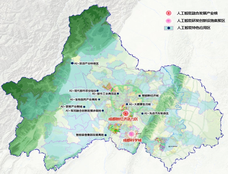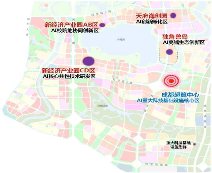 “一区”:在成都天府新区,依托成都科学城建设国家级人工智能创新设施集聚区,到2022年人工智能核心产业规模超过50亿元。