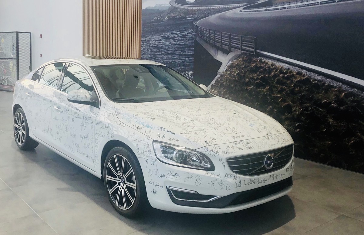 写有全部生产员工签名的沃尔沃汽车成都工厂下线的最后一辆老款S-60汽车