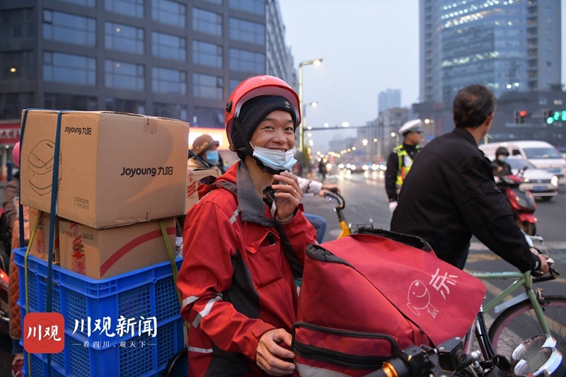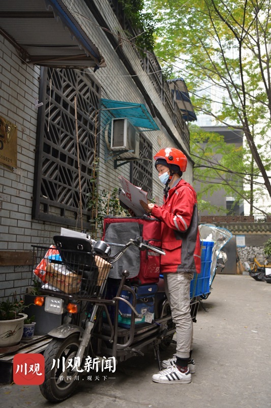 来自重庆的王小军上个月底刚成为一名快递小哥,不到10天的时间,他已经把自己负责配送的太古里、IFS商圈及附近的居民小区摸了个遍,路人问路他也能准确地告诉别人怎么走,有些小区、街道的名字,可能记得比很多成都本地人都熟。